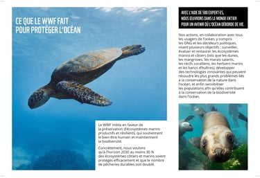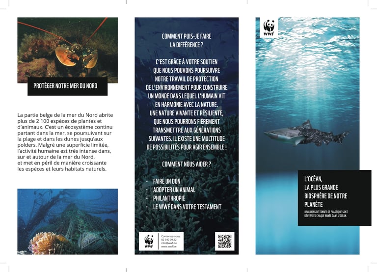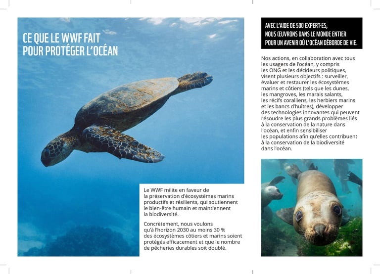 L’objectif de ce travail était de créer un dépliant informatif pour le WWF, centré sur leurs actions pour la préservation de l’océan et de la biodiversité marine.